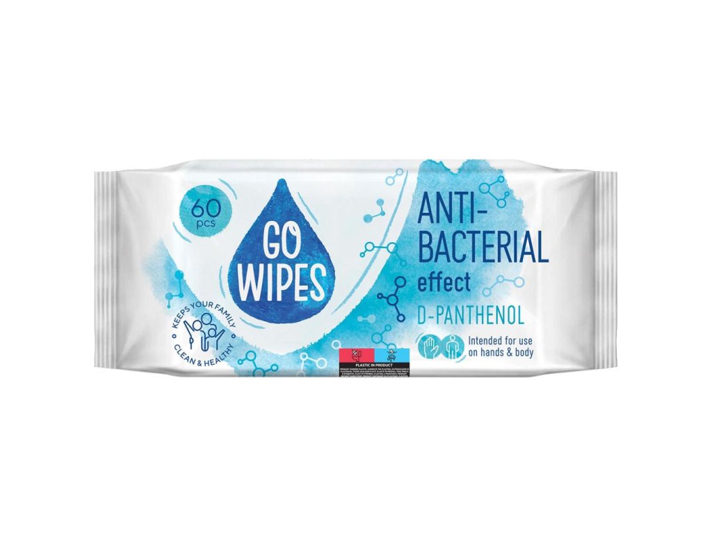 Vlhčené obrúsky GoWipes antibakteriálne s vitamínovým komplexom (A,C,E a D-panthenol) 60ks