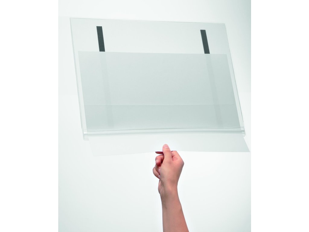 • Vodeodolné vrecko formát A3 je ideálne na zobrazovanie informácií v exteriéri, ako sú záhradné centrá, sauny, bazény, brány a nástenky, kde upozornenia prichádzajú do kontaktu so striekajúcou vodou.