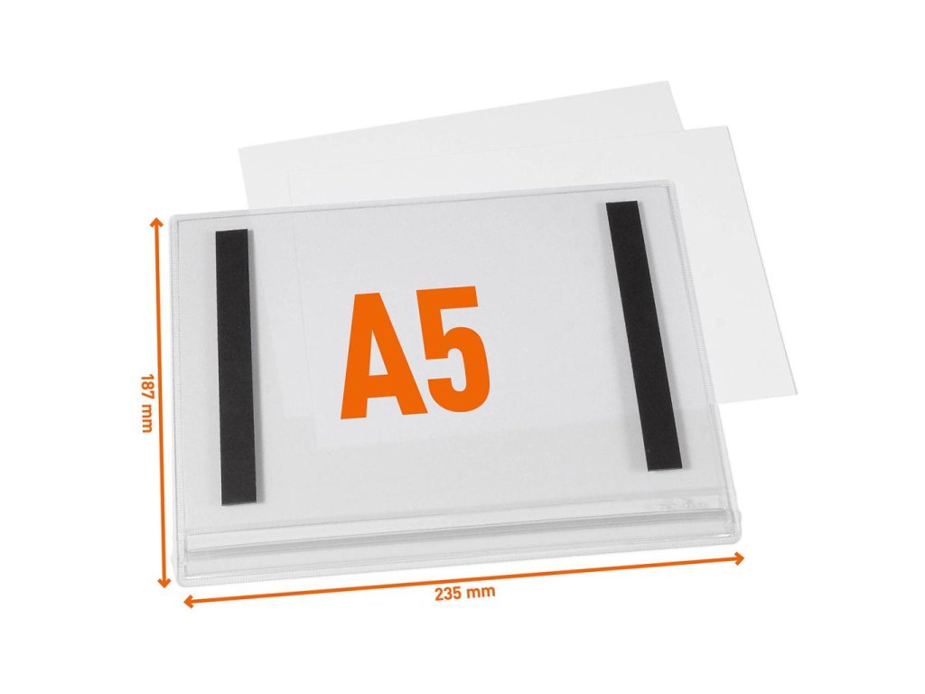 Vrecká na dokumenty vo formáte A5, ktoré sú ideálne na vystavenie informácií vonku alebo vo vlhkých vnútorných priestoroch, ako sú záhradné centrá, sauny alebo bazény, kde môžu byť cedule vystavené striekajúcej vode a postreku.