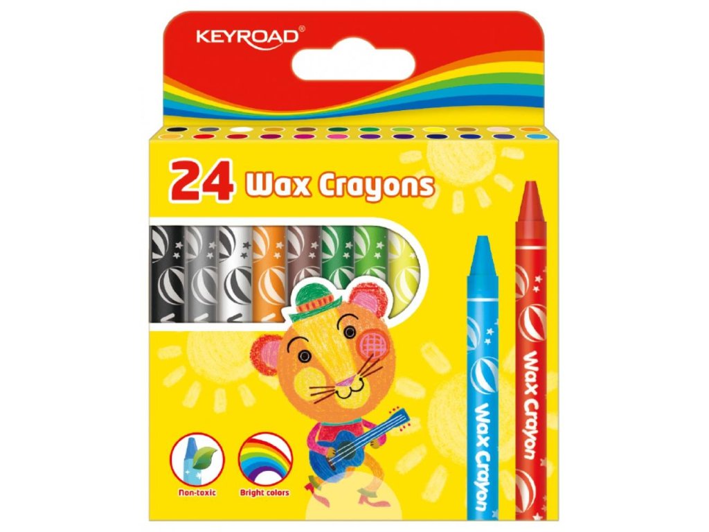 Voskovky ideálne na vyfarbovanie omaľovániek, netoxické, ľahko strúhateľné. Mix 24 farieb. Veľkosť 8 mm.