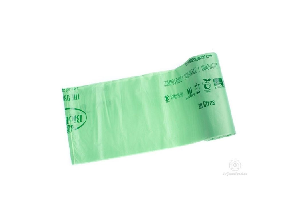 Kompostovateľné vrecia vyrobené na báze kukurice, ideálne na zber bioodpadu z domácností a záhrad. Dajú sa použiť aj ako ekologická alteratíva plastových vreciek na zber zmiešaného komunálneho odpadu. Sú rozložiteľné v komposte v priebehu cca 40 dní. Objem 80 l. Balenie 20 ks.