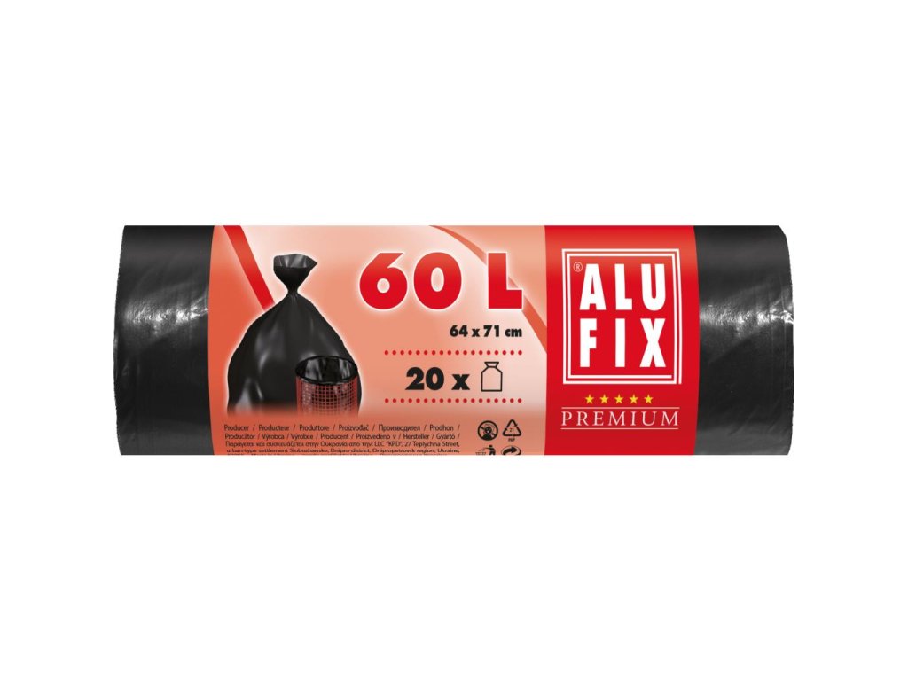 Vrecia na odpadky, čierne, vyrobené z HDPE materiálu bez zápachu, vhodné do domácnosti alebo kancelárie na bežný odpad. Rozmery vreca 64 x 71cm, objem 60 litrov, množstvo 20 ks na rolke, hrúbka 15 mikrónov.