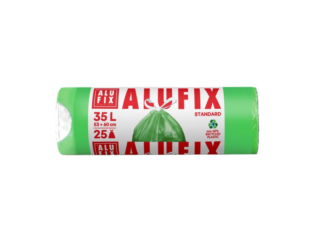 Vrecia na odpadky, zaťahovacie, vyrobené z HDPE materiálu, zelené. Vrece určené do domácností alebo kancelárie a vďaka zaťahovaciemu systému veľmi praktické. Rozmer vreca 53 x 60 cm, objem 35 litrov, množstvo 25 ks na rolke, hrúbka 14 mikrónov.