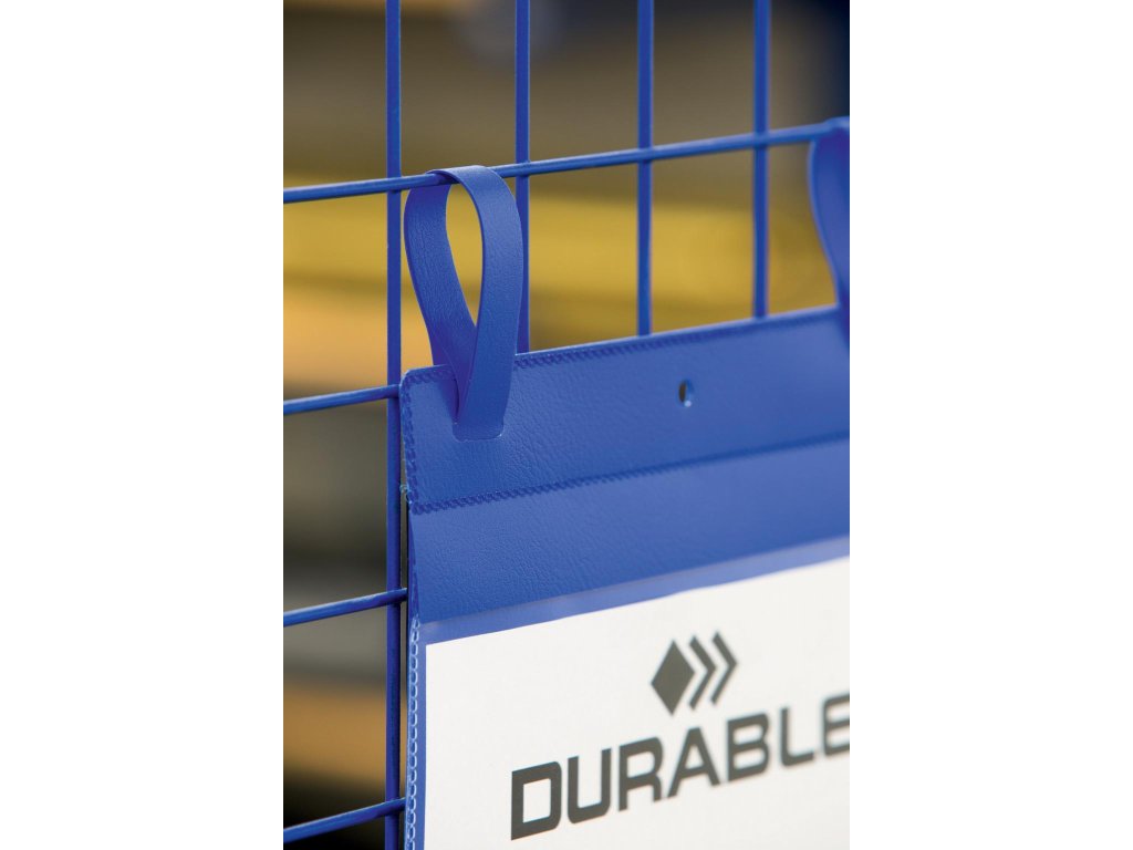 Plastové vrecká s priehľadnou prednou stranou a s 2 upínacími prúžkami s ochranou proti rozpojeniu sú vhodné na kovové povrchy, napr. sieťované kontajnery, rúry a prepravné kontajnery. Použiteľné aj v exteriéri vďaka ochrannej klope, chrániacej dokumenty proti dažďu, prachu a vlhku. Farba tmavomodrá. Formát A5 na šírku. Balenie 50 ks.