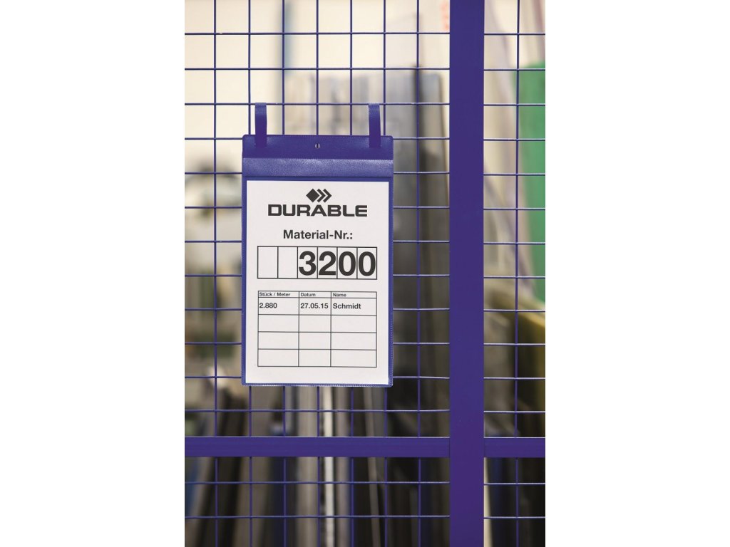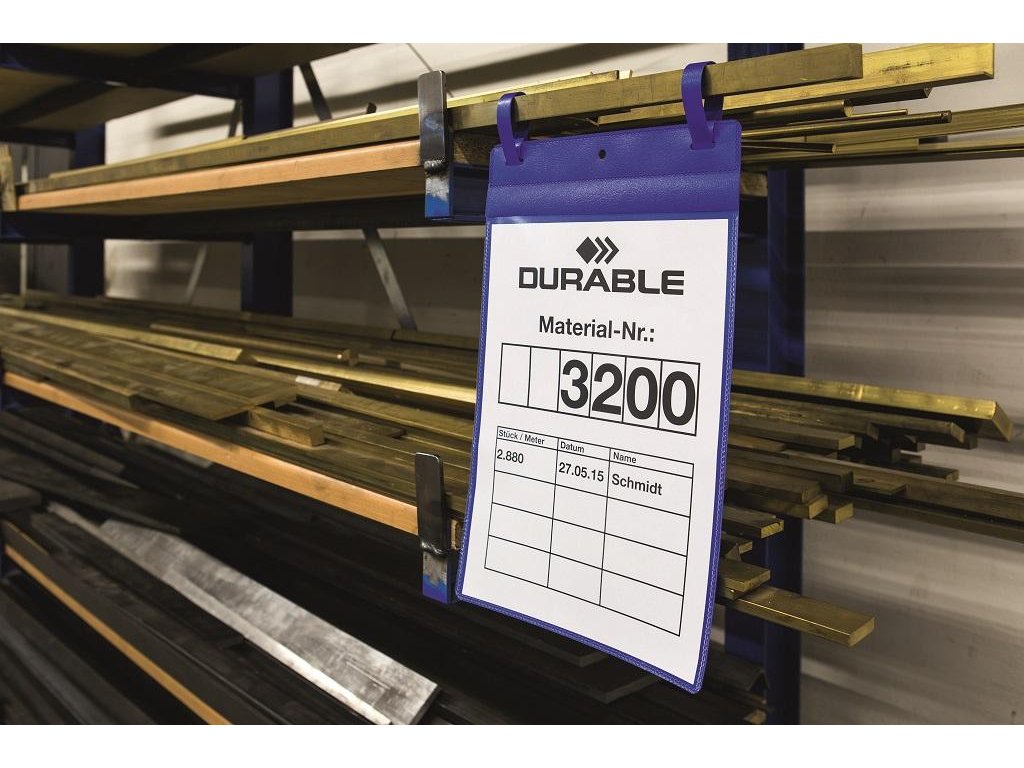 Plastové vrecká s priehľadnou prednou stranou a s 2 upínacími prúžkami s ochranou proti rozpojeniu sú vhodné na kovové povrchy, napr. sieťované kontajnery, rúry a prepravné kontajnery. Použiteľné aj v exteriéri vďaka ochrannej klope, chrániacej dokumenty proti dažďu, prachu a vlhku. Farba modrá. Formát A4 na výšku. Balenie 50 ks.