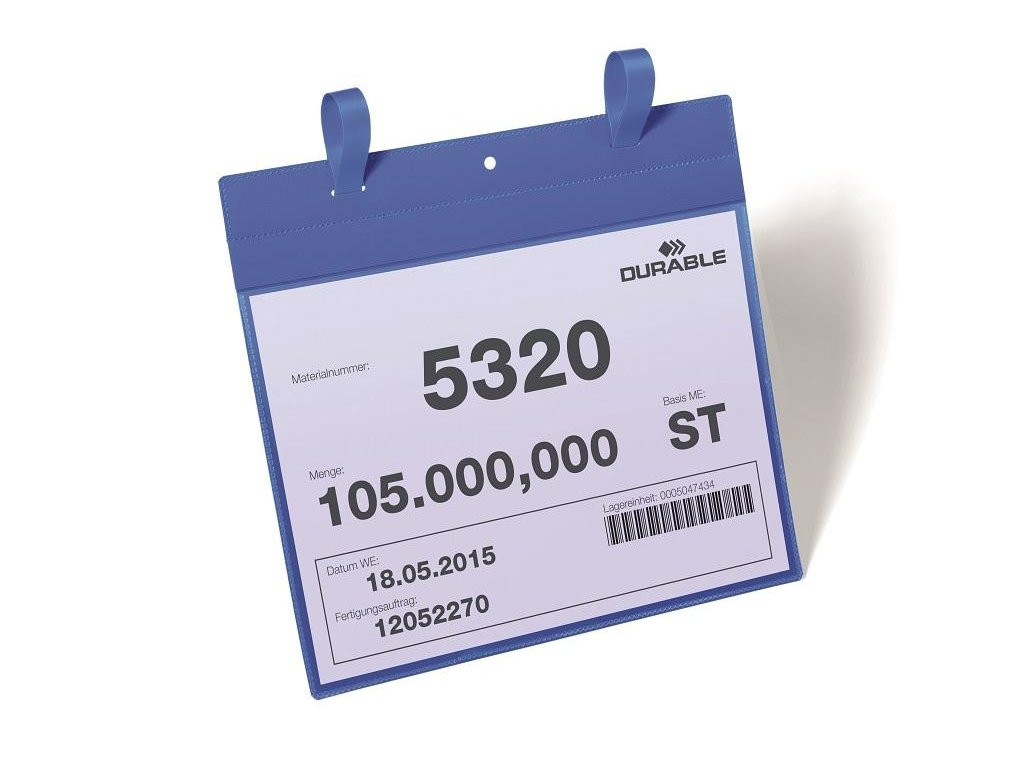 Plastové vrecká s priehľadnou prednou stranou a s 2 upínacími prúžkami s ochranou proti rozpojeniu sú vhodné na kovové povrchy, napr. sieťované kontajnery, rúry a prepravné kontajnery. Použiteľné aj v exteriéri vďaka ochrannej klope, chrániacej dokumenty proti dažďu, prachu a vlhku. Farba modrá. Formát A4 na šírku. Balenie 50 ks.