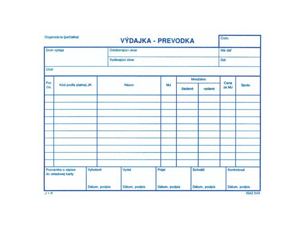 Obchodné tlačivo. Výdajka - prevodka bez DPH, formát A5, blok, 100 listov.