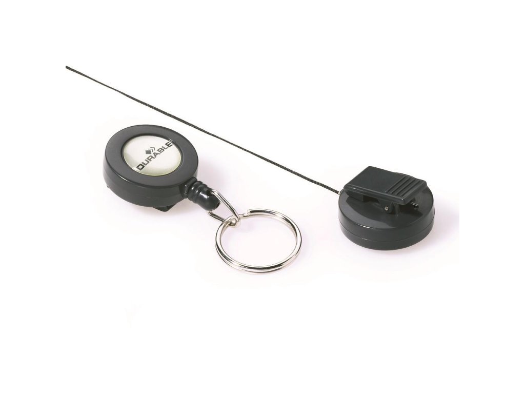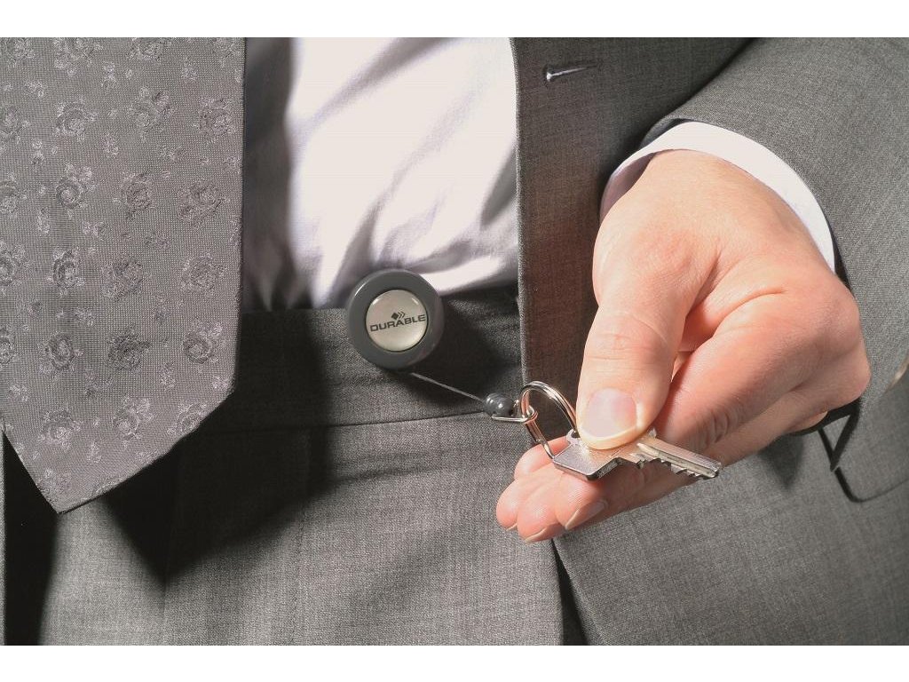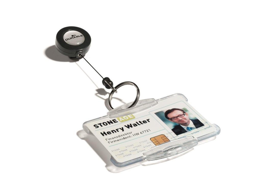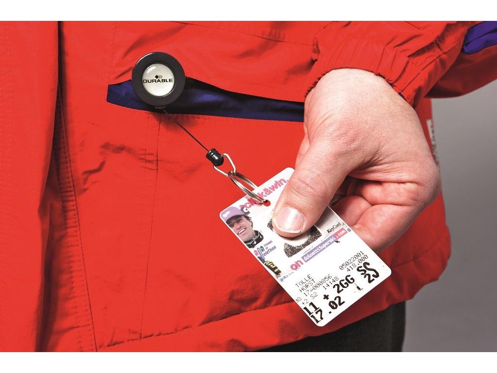 Vysúvací kotúčik s možnosťou vysunutia do 80 cm. Vhodný na uchytenie všetkých visačiek značky Durable s perforáciou. Karička priemeru 25 mm. Balenie 10 ks.