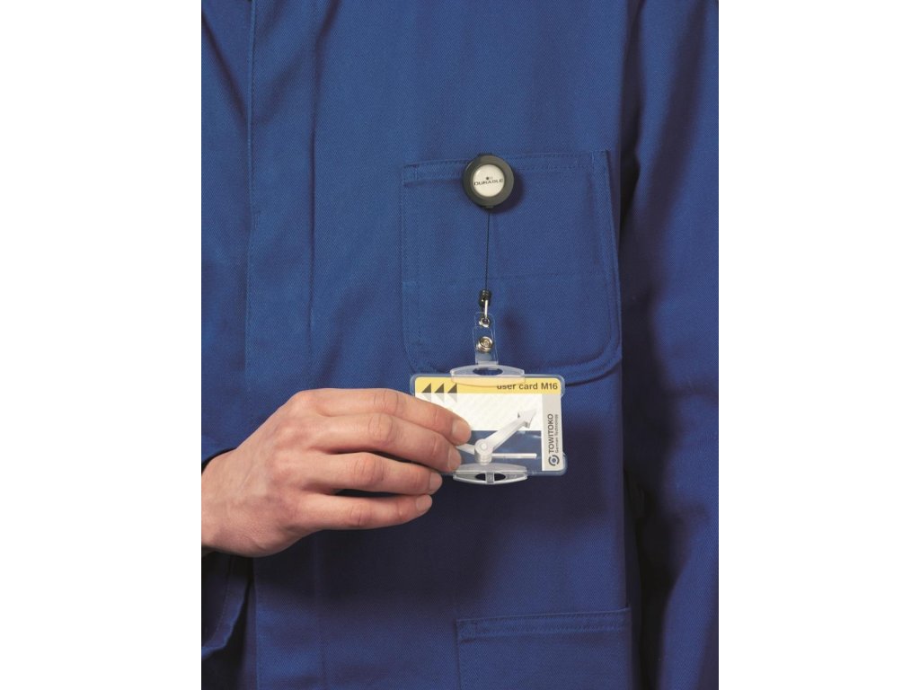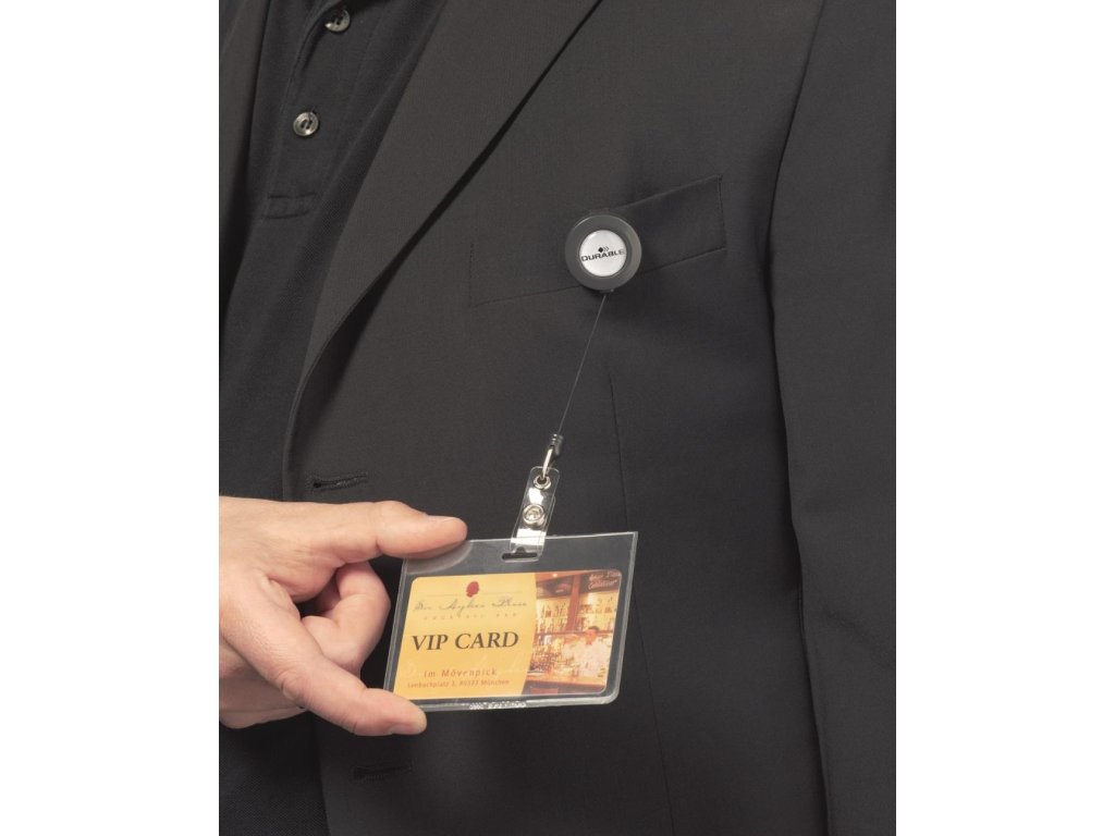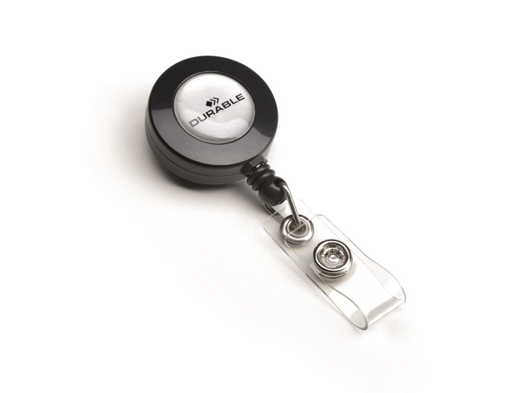 Vysúvací kotúčik s možnosťou vysunutia do 80 cm. Vhodný na uchytenie všetkých visačiek značky Durable s perforáciou. Priemer kotúča 30 mm. Balenie 10 ks.