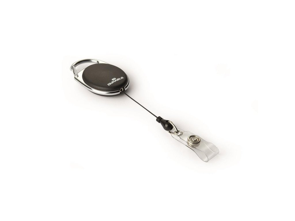 Štýlový oválny vysúvací kotúč s možnosťou vysunutia do 80 cm a kovovým klipom na rubovej strane. Vhodný na uchytenie všetkých visačiek značky DURABLE s perforáciou. Balenie 10 ks.