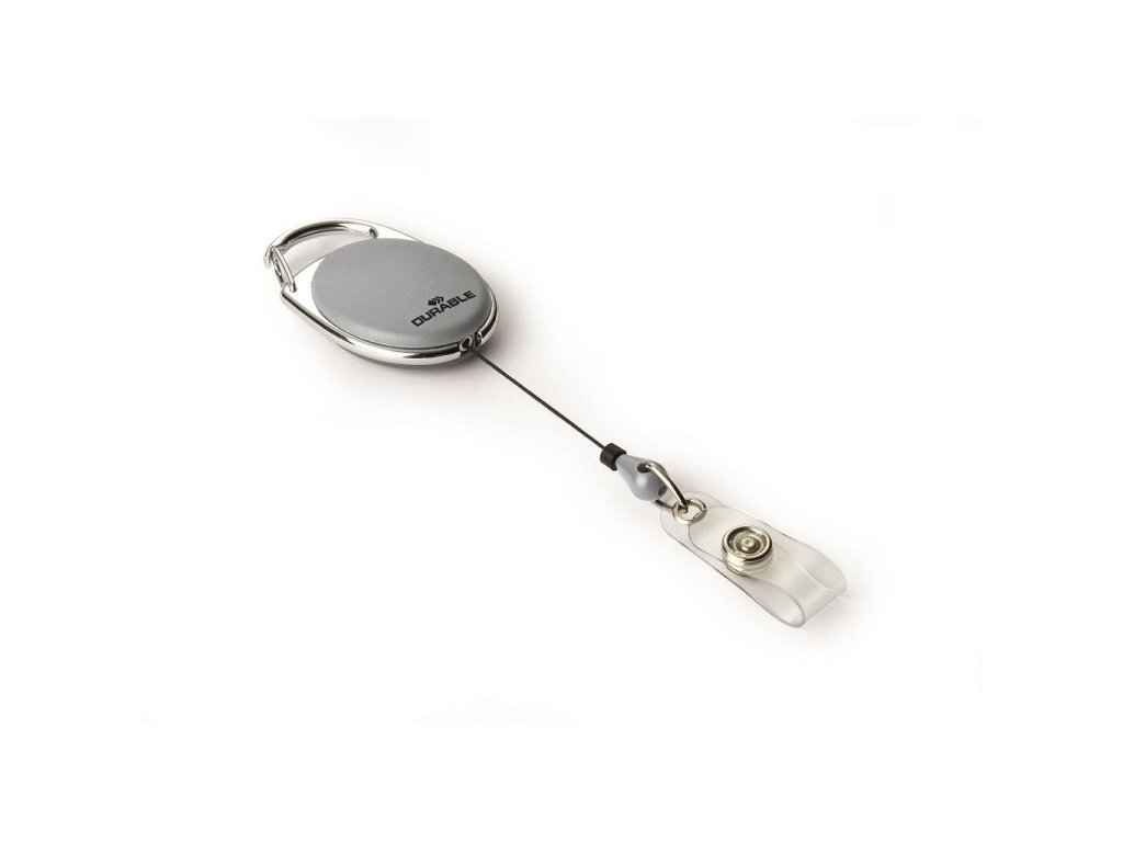 Štýlový oválny vysúvací kotúč s možnosťou vysunutia do 80 cm a kovovým klipom na rubovej strane. Vhodný na uchytenie všetkých visačiek značky DURABLE s perforáciou. Balenie 10 ks.