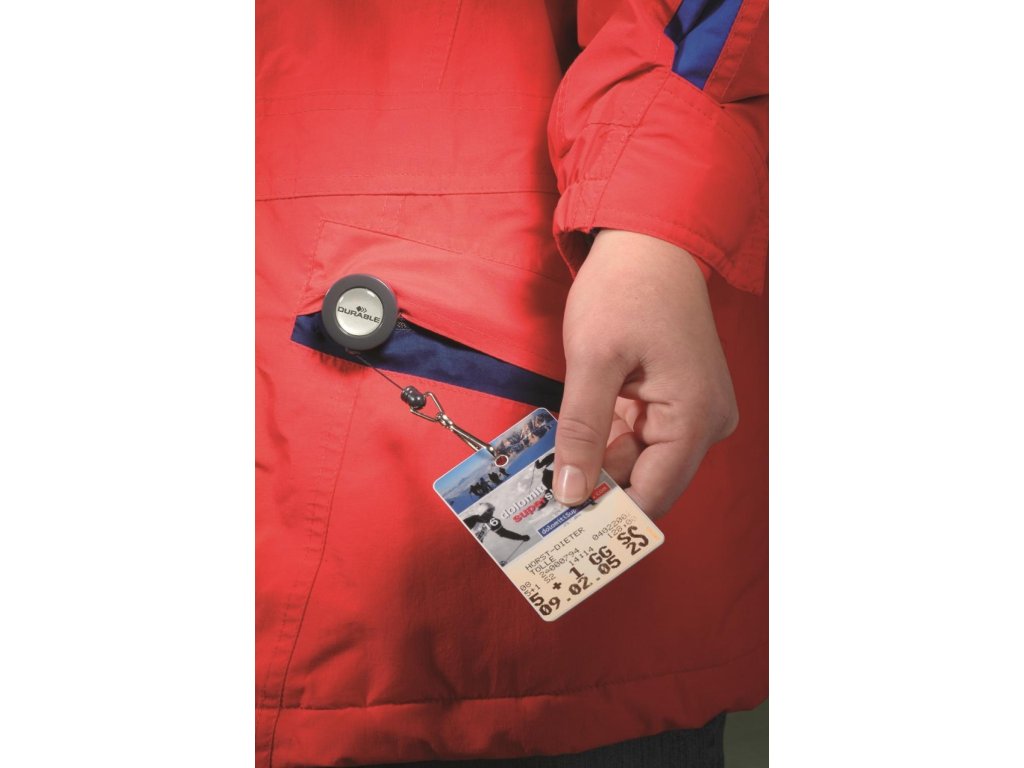 Vysúvací kotúčik s možnosťou vysunutia do 80 cm. Vhodný na uchytenie všetkých visačiek značky Durable s perforáciou. Priemer kotúča 30 mm. Balenie 10 ks.