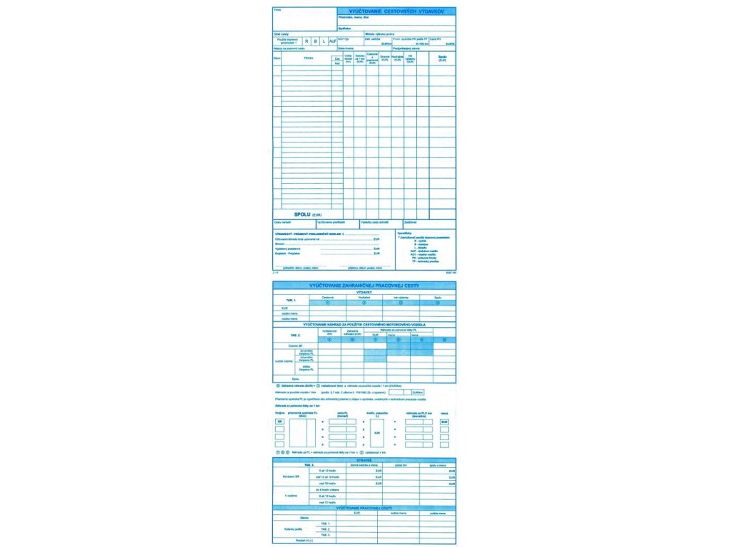 Tlačivo : Vyúčtovanie cestovných výdavkov/zahraničnej pracovnej cesty, formát A4 100ks.