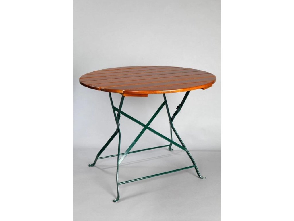 Stoličky a stôl sú skladacie a drevo je ku kovovému skeletu priskrutkované pozinkovanými vratovými skrutkami.
