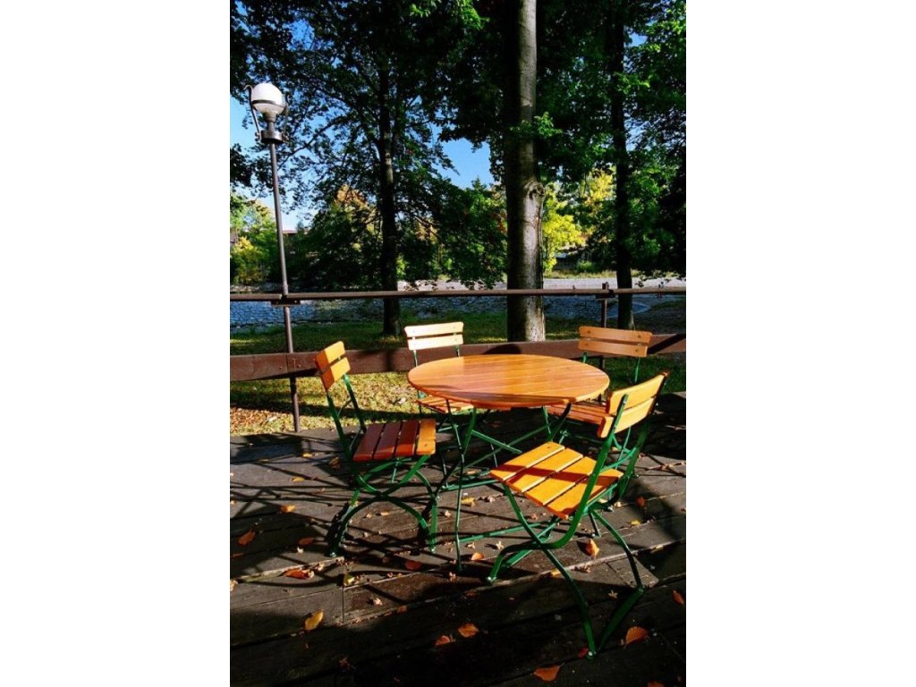• stoličky a stôl sú skladacie a drevo je ku kovovému skeletu priskrutkované pozinkovanými vratovými skrutkami