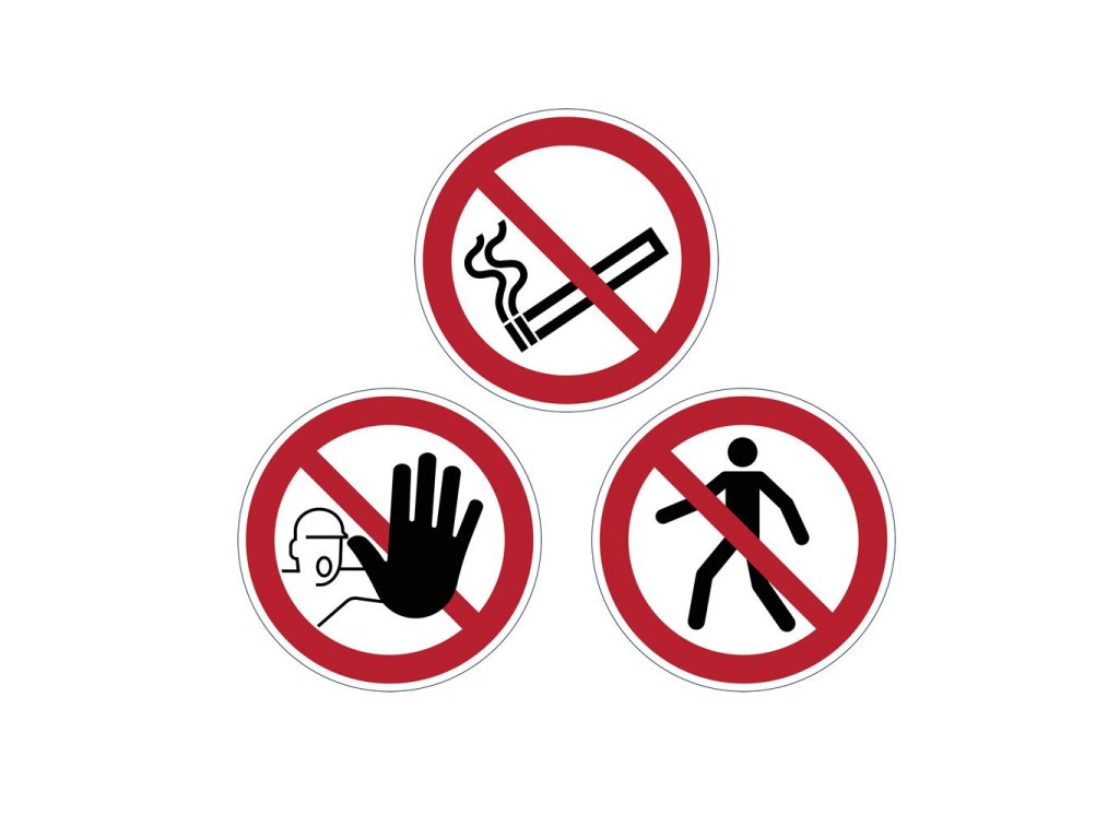 Registrované bezpečnostné označovanie na identifi káciu nebezpečných oblastí, skladovacích priestorov, chodníkov a pod. Odolnosť proti skĺznutiu R9 podľa DIN 51130 v súlade s ISO 7010. Samolepiace značky na bezpečnostné označenie pre vnútorné použitie v skladoch, distribučných centrách, výrobných závodov a i. Odolné voči oderu a ťažkej záťaži. Zákazová značka priemer 430 mm, hrúbka 0,4 mm.