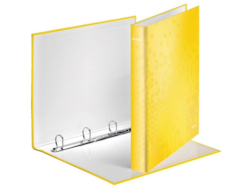 Lesklý vysokokvalitný laminovaný zakladač formátu A4 Maxi rady WOW v žiarivej farbe s možnosťou zakladania dokumetov v závesných obaloch a využívania indexov. D-krúžková mechanika pre väčšiu kapacitu a jednoduché prezeranie, prítlačná spona na fixáciu voľných listov. Šírka chrbta 40 mm, kapacita 250 listov.