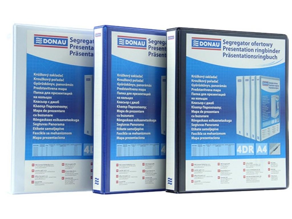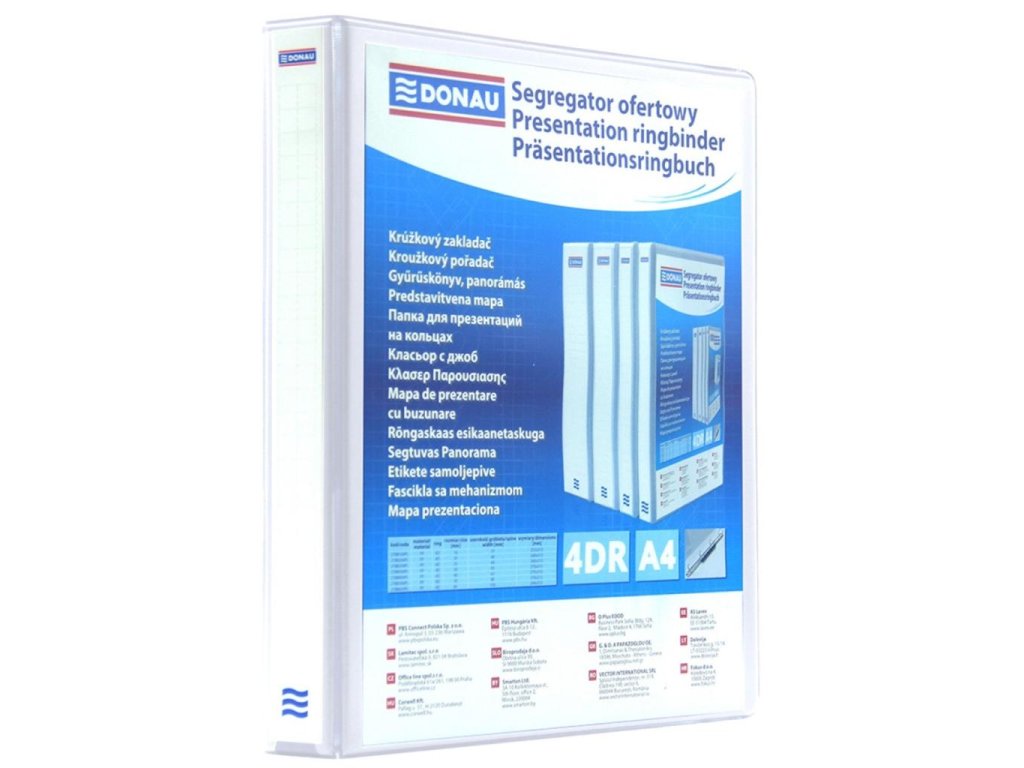 Zakladač 4-krúžkový prezentačný DONAU kartón/PP, A4/4RD/65, biely