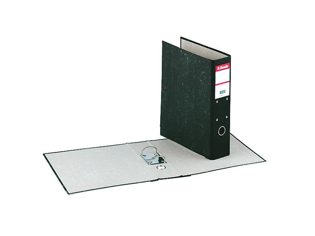 Zakladač s papierovým poťahom čierneho mramorového vzoru s mechanizmom na umiestnenie závesných máp. Vybavený chrbtovým krúžkom a natlačenou etiketou. Formát A4, šírka chrbta 7,5 cm. Väčšie balenie 25 ks.