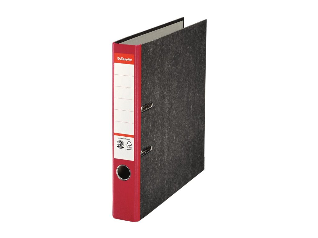 Štruktúrovaný papierový poťah s čiernym mramorovým vzorom, formát A4. Zakladač vybavený rado zámkom a nalepeným chrbtovým štítkom. Páková mechanika v dizajne MATT s prítlačnou lištou. Šírka chrbta 5 cm. Balenie 25 ks.