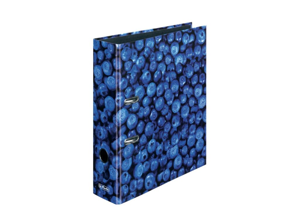 Pákový zakladač radu maX.file protect laminovaný, formát A4. Šírka chrbta 8 cm, bez štítku, otvor na zadnej strane a radokrúžok pre lepšiu manipuláciu. Motív čučoriedky.