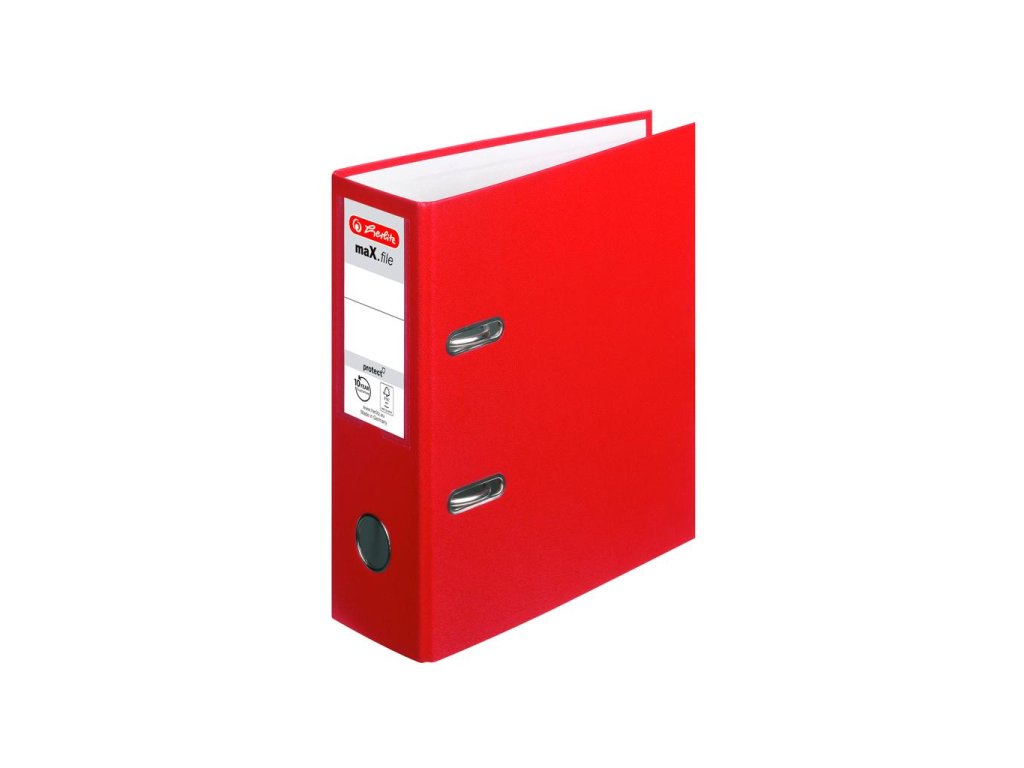 Zakladač maX.file protect formátu A5 s kvalitnou pákovou mechanikou, potiahnutý polypropylénovou fóliou. Vybavený chrbtovým krúžkom pre lepšiu manipuláciu, vreckom s vymeniteľným chrbtovým štítkom a uzatváracím mechanizmom. Vnútorný biely podlep. Šírka chrbta 7,5 cm. Formát A5 na výšku. Farba červená. Väčšie balenie 10 ks.