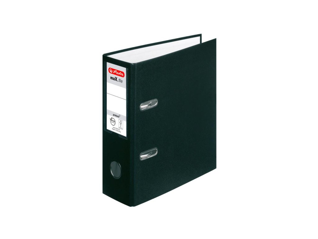 Zakladač maX.file protect formátu A5 s kvalitnou pákovou mechanikou, potiahnutý polypropylénovou fóliou. Vybavený chrbtovým krúžkom pre lepšiu manipuláciu, vreckom s vymeniteľným chrbtovým štítkom a uzatváracím mechanizmom. Vnútorný biely podlep. Šírka chrbta 7,5 cm. Formát A5 na výšku. Farba čierna. Väčšie balenie 10 ks.