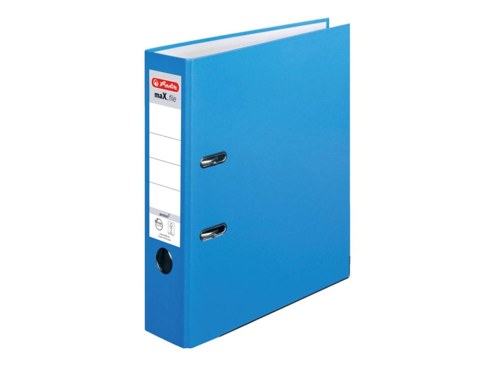 Pákový zakladač maX.file protect A4, Color Blocking, materiál PP. Otvor na zadnej strane a radokrúžok pre lepšiu manipuláciu. Šírka chrbta 8 cm. Farba baltická modrá.