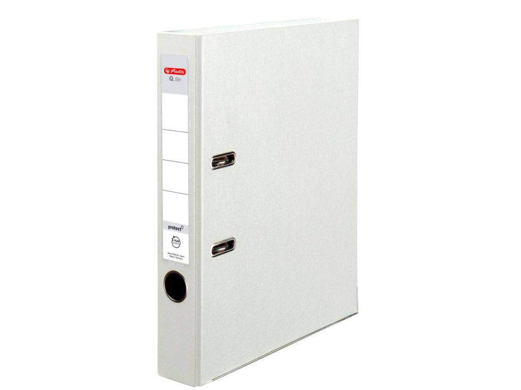 Pákový zakladač Q.file protect formátu A4. Šírka chrbta 5 cm. Materiál polypropylén, zásuvné vrecko, vnútorný biely podlep, lepenka 2mm, otvor na zadnej strane a radokrúžok pre lepšiu manipuláciu, kovová lišta. Farba biela. Väčšie balenie 25 ks.