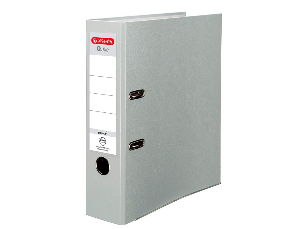Pákový zakladač Q.file protect formátu A4. Šírka chrbta 8cm. Materiál polypropylén, zásuvné vrecko, vnútorný biely podlep, lepenka 2mm, otvor na zadnej strane a radokrúžok pre lepšiu manipuláciu, kovová lišta. Farba sivá. Väčšie balenie 20 ks.