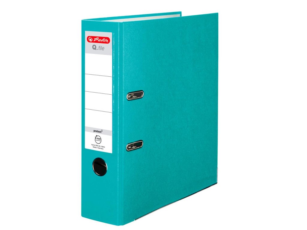 Pákový zakladač Q.file protect formátu A4. Šírka chrbta 8cm. Materiál polypropylén, zásuvné vrecko, vnútorný biely podlep, lepenka 2mm, otvor na zadnej strane a radokrúžok pre lepšiu manipuláciu, kovová lišta. Farba tyrkysová. Väčšie balenie 20 ks.
