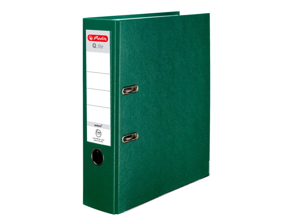 Pákový zakladač Q.file protect formátu A4. Šírka chrbta 8cm. Materiál polypropylén, zásuvné vrecko, vnútorný biely podlep, lepenka 2mm, otvor na zadnej strane a radokrúžok pre lepšiu manipuláciu, kovová lišta. Farba zelená. Väčšie balenie 20 ks.