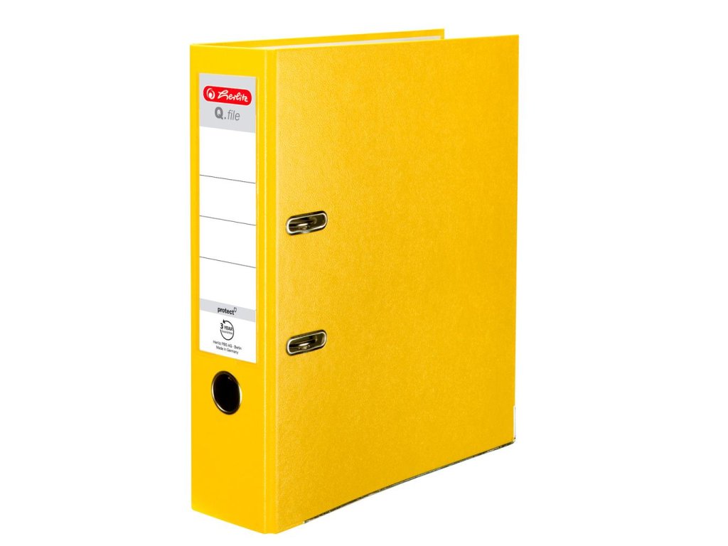 Pákový zakladač Q.file protect formátu A4. Šírka chrbta 8cm. Materiál polypropylén, zásuvné vrecko, vnútorný biely podlep, lepenka 2mm, otvor na zadnej strane a radokrúžok pre lepšiu manipuláciu, kovová lišta. Farba žltá. Väčšie balenie 20 ks.