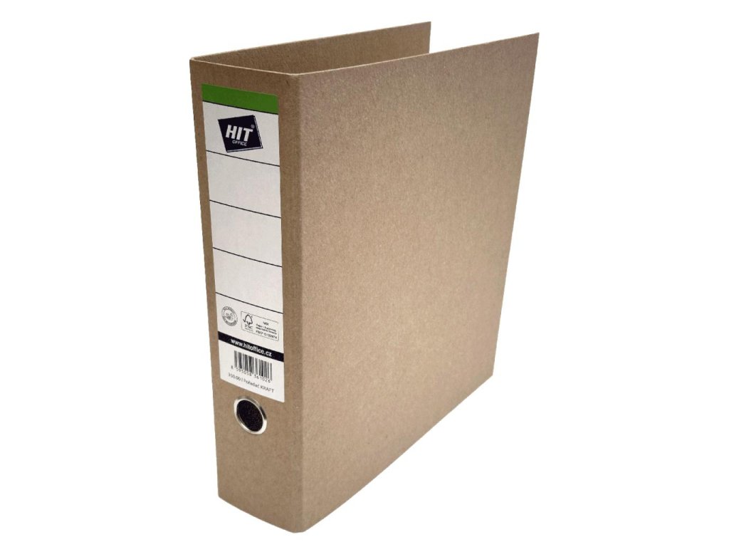 Zakladač z materiálu KRAFT s pákovou mechanikou a chrbtom 8 cm. Zakladač obsahuje štítok a EAN kód na chrbte poradača. Vyrobené z FSC® certifikovaného materiálu.