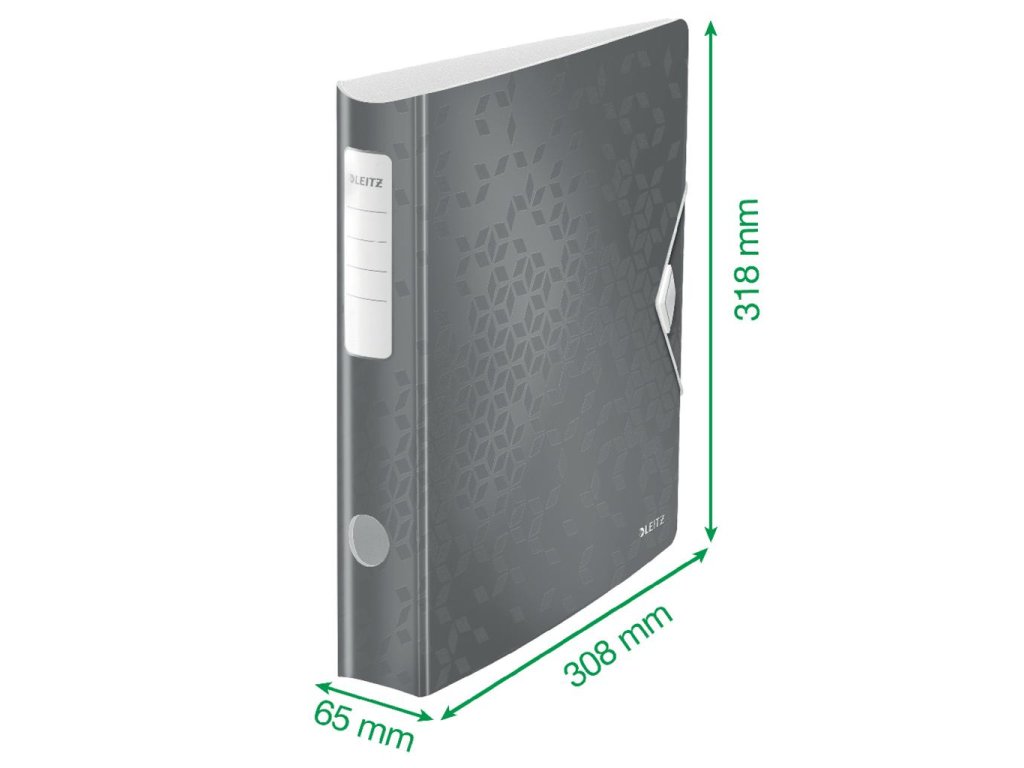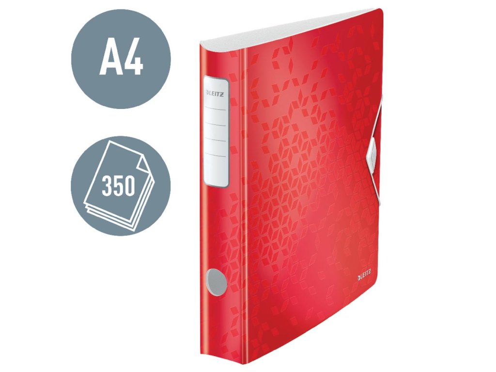 Mobilný zakladač v žiarivej WOW farbe s dvojfarebným efektom na organizáciu dokumentov v kancelárii i na cestách. Ľahký materiál a ergonomický dizajn. Dvojvrstvový PP materiál vyplnený penou z tzv. Polyfoamu, ktorý je extrémne odolný a ľahký. Unikátna páková mechanika s otvorením o 180 ° umožňuje o 50 % širšie otvorenie a o 20 % rýchlejšiu prácu so zakladačom. Uzatváranie na gumičku. Vnútorný obal na voľné papiere, CD/ DVD a vizitky. Zaoblený chrbát a praktická úchytka na pero. Kapacita 350 listov A4 (80 g/ m²). Chrbát 6,5 cm. Farba červená.