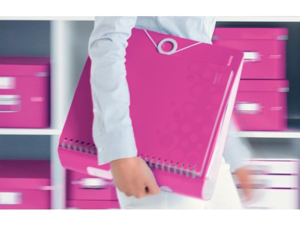 Inovatívny mobilný zakladač v žiarivých WOW farbách s dvojfarebným efektom. Dvojvrstvový PP materiál vyplnený penou z tzv. Polyfoamu, ktorý je extrémne odolný a ľahký. Unikátna páková mechanika s otvorením o 180°, ktorá umožňuje o 50 % širšie otvorenie a o 20 % rýchlejšiu prácu so zoraďovačom. Praktické uzatváranie zoraďovača na gumičku pre bezpečný prenos. Vnútorný obal na voľné papiere, CD/DVD a vizitky. Zaoblený chrbát a praktická úchytka na pero pre pohodlné mobilné použitie. Šírka chrbta 7,5 cm, kapacita 500 listov A4 (80 g/m²). Farba ružová.