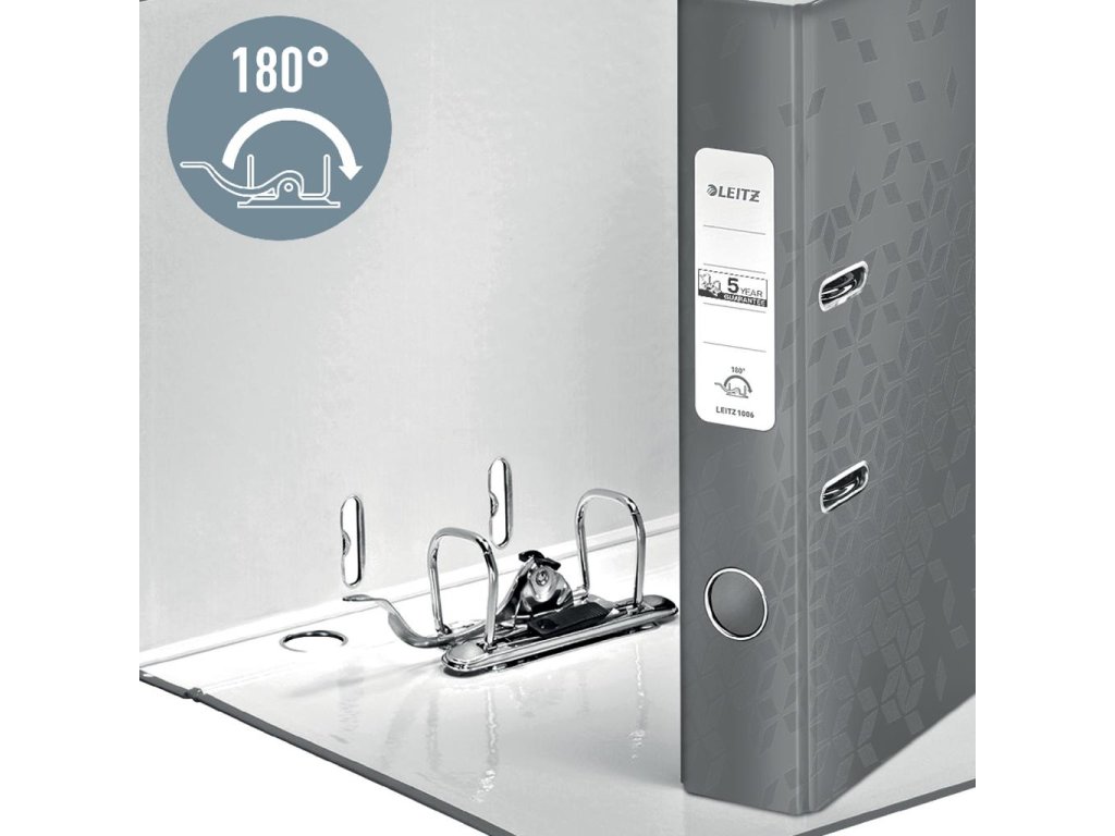 Pákový zakladač rady WOW v žiarivej červenej farbe s dvojfarebným efektom. Unikátna patentovaná mechanika Leitz 180° poskytuje širšie otvorenie, možnosť zakladania väčšieho množstva papierov a o 20 % rýchlejšiu prácu so zakladačom. Vybavený chrbtovým krúžkom, rado zámkom a samolepiacim chrbtovým štítkom, ktorý môže byť v prípade potreby odstránený. Šírka chrbta 5 cm, kapacita 350 listov. Väčšie balenie 10 ks.