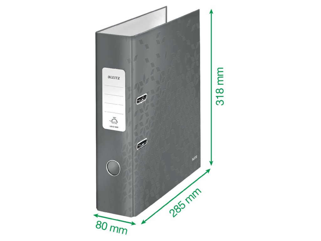 Pákový zakladač rady WOW v žiarivej červenej farbe s dvojfarebným efektom. Unikátna patentovaná mechanika Leitz 180° poskytuje širšie otvorenie, možnosť zakladania väčšieho množstva papierov a o 20 % rýchlejšiu prácu so zakladačom. Vybavený chrbtovým krúžkom, rado zámkom a samolepiacim chrbtovým štítkom, ktorý môže byť v prípade potreby odstránený. Laminovaný povrch dodáva zoraďovaču prémiový vzhľad a zvyšuje jeho pevnosť. Šírka chrbta 8 cm, kapacita 600 listov. Väčšie balenie 10 ks.
