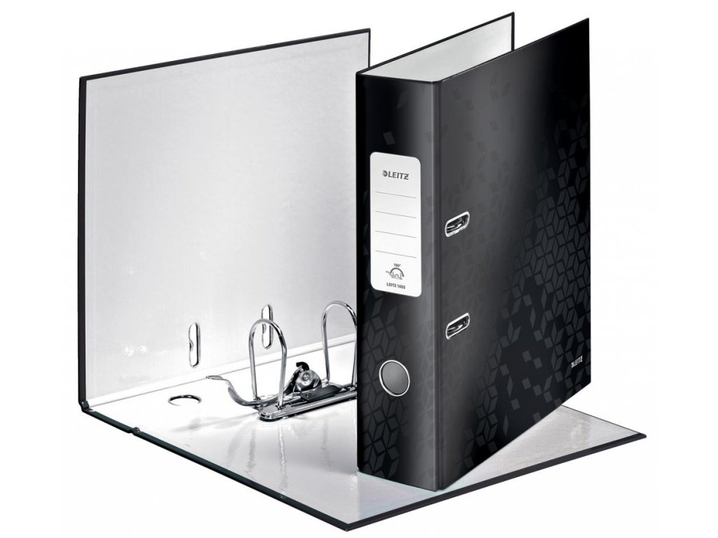 Pákový zakladač rady WOW v žiarivej čiernej farbe s dvojfarebným efektom. Unikátna patentovaná mechanika Leitz 180° poskytuje širšie otvorenie, možnosť zakladania väčšieho množstva papierov a o 20 % rýchlejšiu prácu so zakladačom. Vybavený chrbtovým krúžkom, rado zámkom a samolepiacim chrbtovým štítkom, ktorý môže byť v prípade potreby odstránený. Šírka chrbta 8 cm, kapacita 600 listov. Väčšie balenie 10 ks.