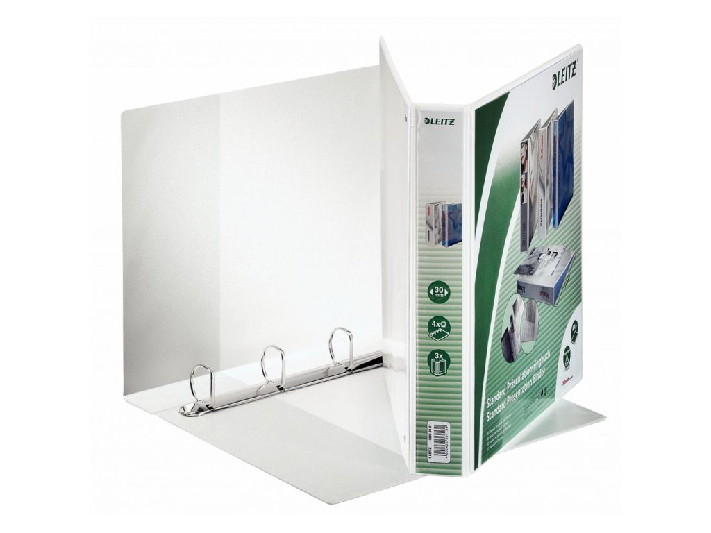 4-krúžkový prezentačný zakladač s transparentným predným, zadným a chrbtovým priehľadným vreckom umožňuje prispôsobiť zakladač svojim potrebám. Vyrobený z polypropylénu (PP), preto je i vodeodolný a nepodlieha klimatickým zmenám na rozdiel od zakladačov vyrobených z PVC. Fólia je prilepená na kartón, preto neprichádza k nepekným bublinám. 4 D-krúžky priemeru 50 mm. Kapacita: 500 listov A4 (80 g/m2). Chrbát 5 cm. Farba biela.
