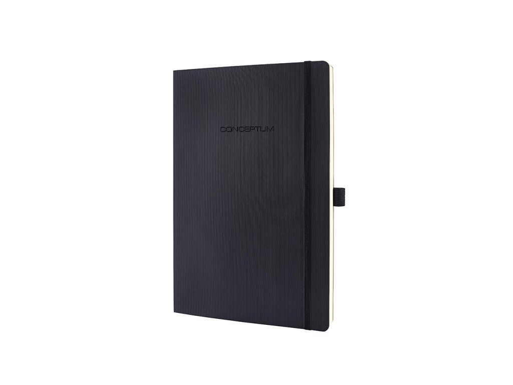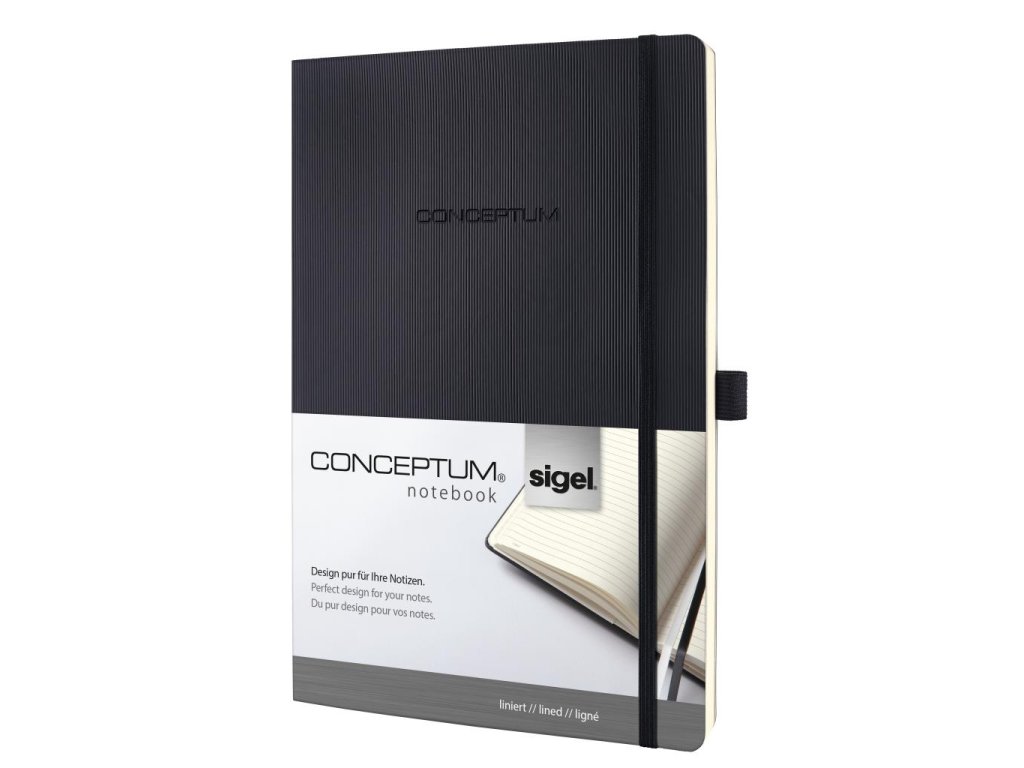 Zápisník s mäkkými doskami a uzatváraním na gumičku. Čistý a jednoduchý dizajn až do posledného detailu. Moderný, elegantný, so zameraním na to podstatné. To je CONCEPTUM®, víťaz medzinárodnej ceny za dizajn. Nóbl sofi stikované zápisníky jedinečného štýlu, ktorý môžete vidieť aj cítiť, sú vhodné pre profesionálnu, ako aj pre osobnú potrebu. S citlivosťou volené materiály a vynikajúca kvalita sú skombinované so skutočnou eleganciou. Zápisníky sú vybavené osobným adresárom, uškom na pero, 2 lacetkami, vreckom na uchovanie materiálov s miestom na vizitku, k dispozícii je 20 perforovaných strán pre potreby vytrhnutia poznámok, strany v zápisníku sú číslované. Formát A4, úprava linajková. Počet strán 194. Farba čierna.