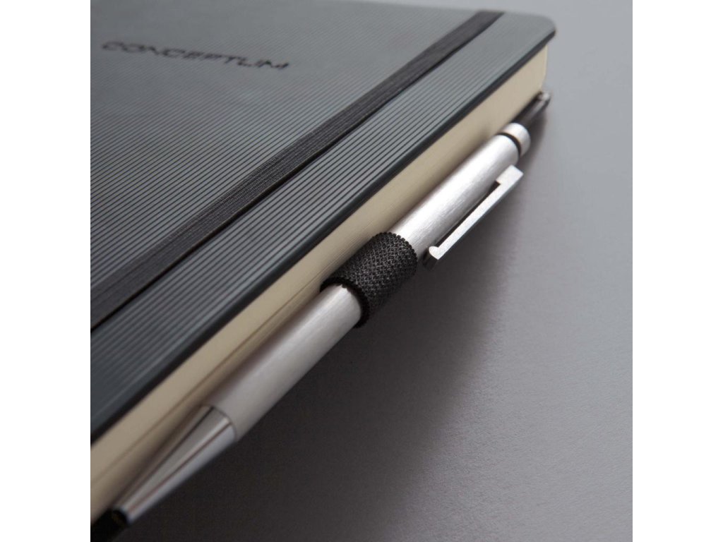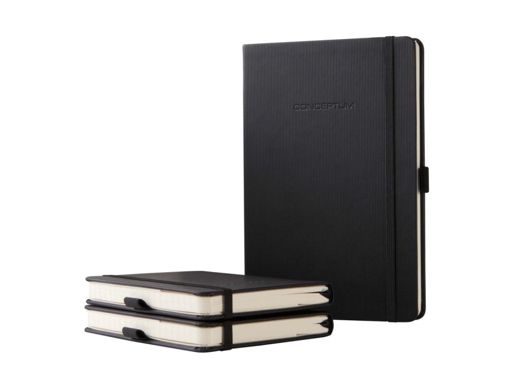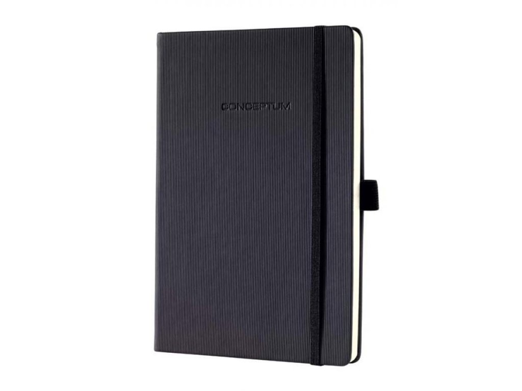 Zápisník s elastickou gumičkou, chrániacou pred nechceným otvorením. Pevná väzba s jemným ryhovaním. Čistý a jednoduchý dizajn až do posledného detailu. Moderný, elegantný, so zameraním na to podstatné. To je CONCEPTUM®, víťaz medzinárodnej ceny za dizajn. Nóbl sofi stikované zápisníky jedinečného štýlu, ktorý môžete vidieť aj cítiť, sú vhodné pre profesionálnu, ako aj pre osobnú potrebu. S citlivosťou volené materiály a vynikajúca kvalita sú skombinované so skutočnou eleganciou. Zápisníky sú vybavené osobným adresárom, uškom na pero, 2 lacetkami, vreckom na uchovanie materiálov s miestom na vizitku, k dispozícii je 20 perforovaných strán pre potreby vytrhnutia poznámok, strany v zápisníku sú číslované.Formát A5, úprava linajková. Počet strán 194. Farba čierna.