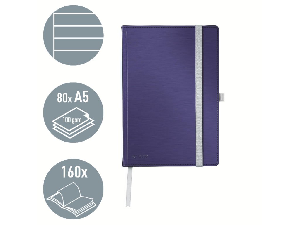 Zápisník linajkový HC A5 Leitz Style tvrdé dosky titánovo modrý