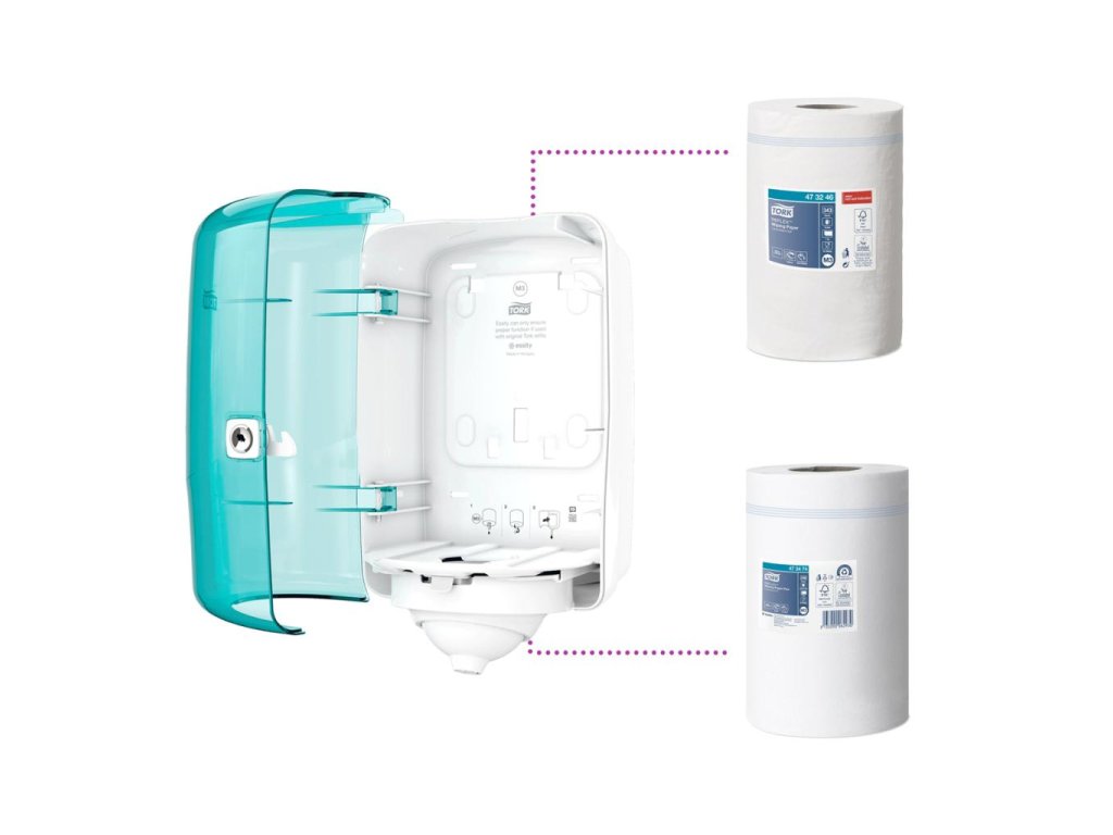 Tork® Reflex™ mini zásobník na jednotlivo dávkované utierky so stredovým odvíjaním je ideálny pre tých, ktorí hľadajú riešenie na utieranie rúk aj povrchov. Vďaka jeho tvaru, ktorý šetrí priestor, a otočnému dávkovaču je vhodný do profesionálneho prostredia akejkoľvek veľkosti. Tento systém umožňuje dávkovanie po jednom útržku, čím reguluje spotrebu až o 37 % lepšie v porovnaní so systémom Tork® so stredovým odvíjaním.