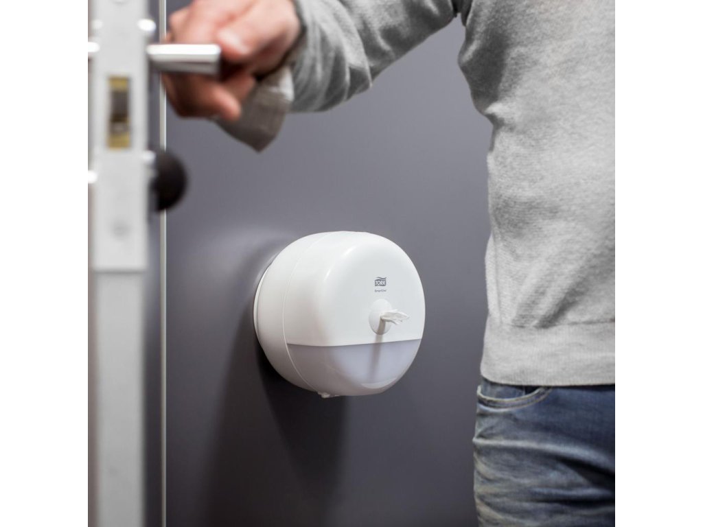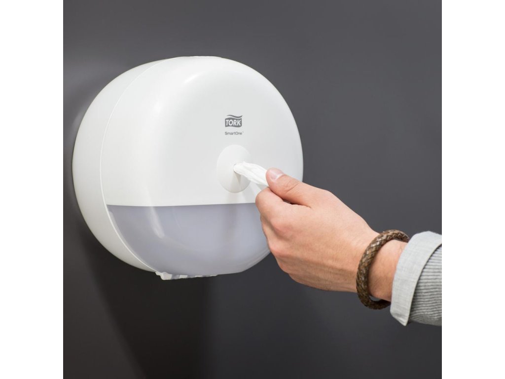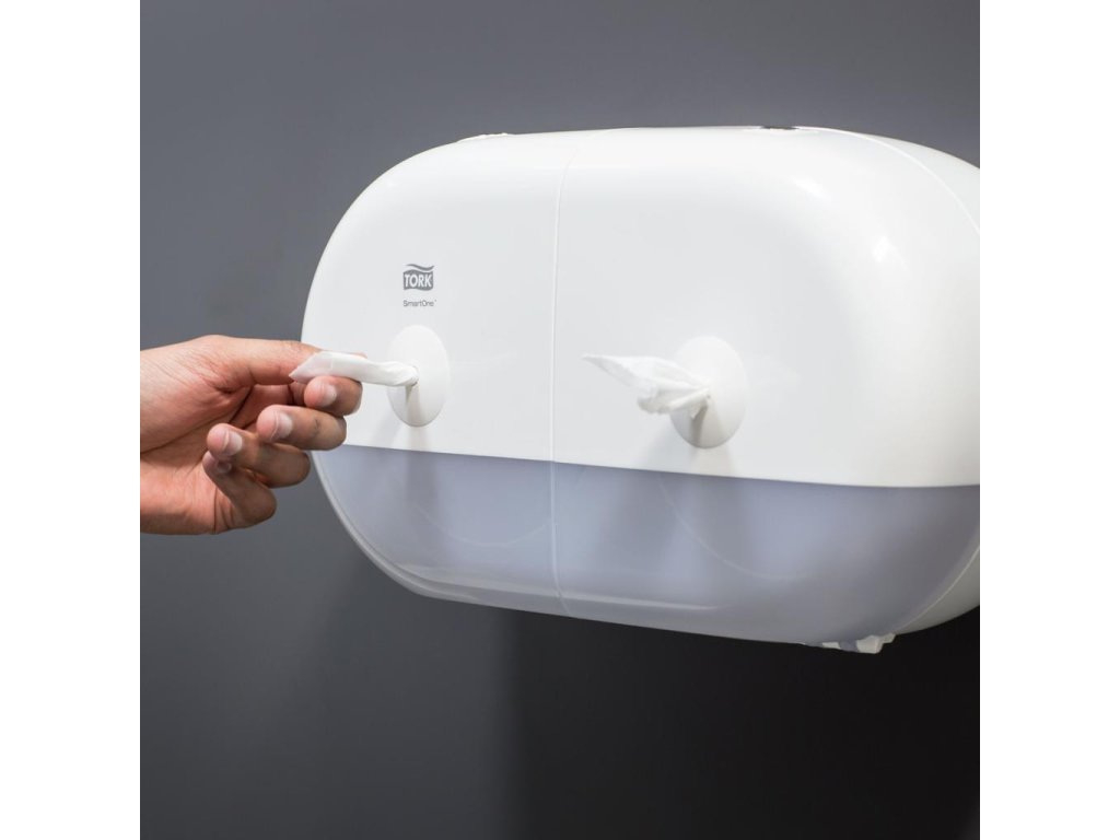 Tork SmartOne® mini zásobník na toaletný papier v dizajne Elevation je moderný a efektívny systém zásobníkov vhodný pre toalety a umyvárne s nízkou až strednou návštevnosťou, kde je požadovaná vyššia odolnosť. Dávkovanie po útržkoch pomáha znižovať spotrebu až o 40 % v porovnaní s tradičnými jumbo kotúčovými zásobníkmi, čo znamená viac návštev na jeden kotúč. Zásobníky Tork Elevation majú praktický a moderný dizajn, ktorý zanecháva v hosťoch dlhodobý dojem.