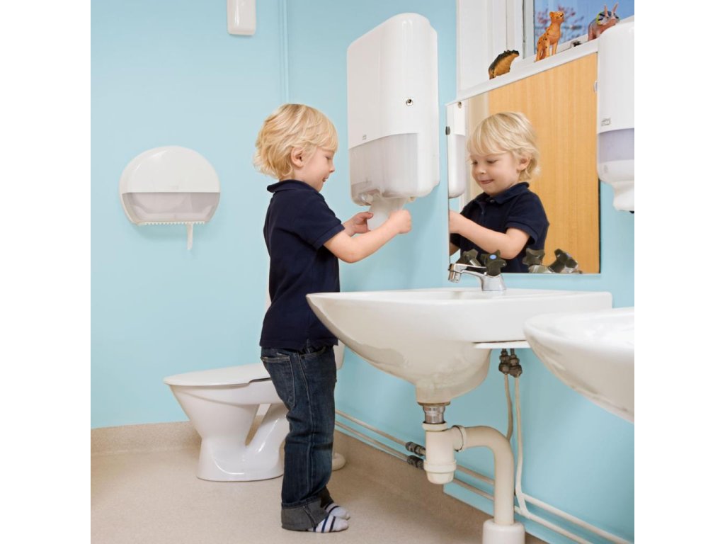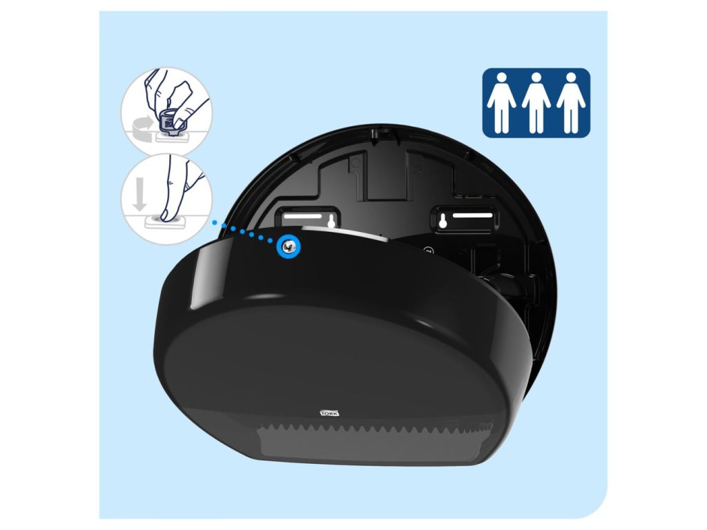 Tork zásobník na toaletný papier Jumbo kotúč v dizajne Elevation je vhodný pre vysoko frekventované miesta. Jeho mimoriadne veľká kapacita šetrí čas na údržbu a zaisťuje, aby bol papier vždy k dispozícii.