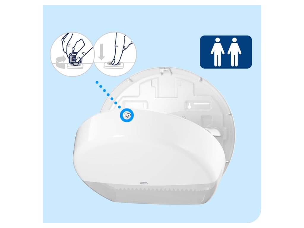 Tork zásobník na toaletný papier Mini Jumbo v dizajne Elevation je ideálny pre stredne až vysoko frekventované toalety a umyvárne, kde sú časová efektívnosť a znížené náklady dôležité. Jeho veľká kapacita šetrí čas na údržbu a zaisťuje, aby bol papier vždy k dispozícii. Zásobníky Tork Elevation majú hladký, praktický, moderný dizajn.