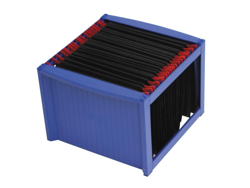 Zásobník vhodný na závesné obaly A4 s prístupom zhora. Jednoduchá montáž, možnosť stohovania. Kapacita cca 40 závesných obalov typu V.