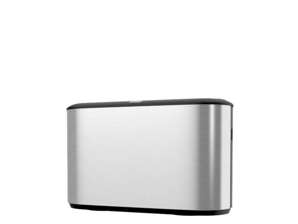 Moderný vzhľad stolového zásobníka s hladkým povrchom a čistými líniami bude dokonale ladiť s vašou toaletou a umyvárňou. Vytvorte skvelý dojem, ktorý bude prízvukovať imidž vysokej kvality vášho zariadenia. Štýlová antikorová úprava s povrchovou úpravou, na ktorej nezanecháte odtlačky prstov. Zásobník je určený na skladané papierové utierky Multifold.