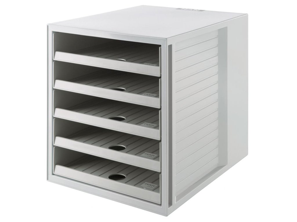 Keď má ísť o ochranu životného prostredia, produkty rady KARMA sú tie pravé. Box s piatimi otvorenými zásuvkami vhodný do ľubovoľnej police, určenej na zakladače alebo samostatne postavený. Rozmery (š×v×h) 275×320×330 mm. Inovatívny a trendový produkt vyrobený z recyklovaných granulí, mixovaných s bio plastami a drevom.